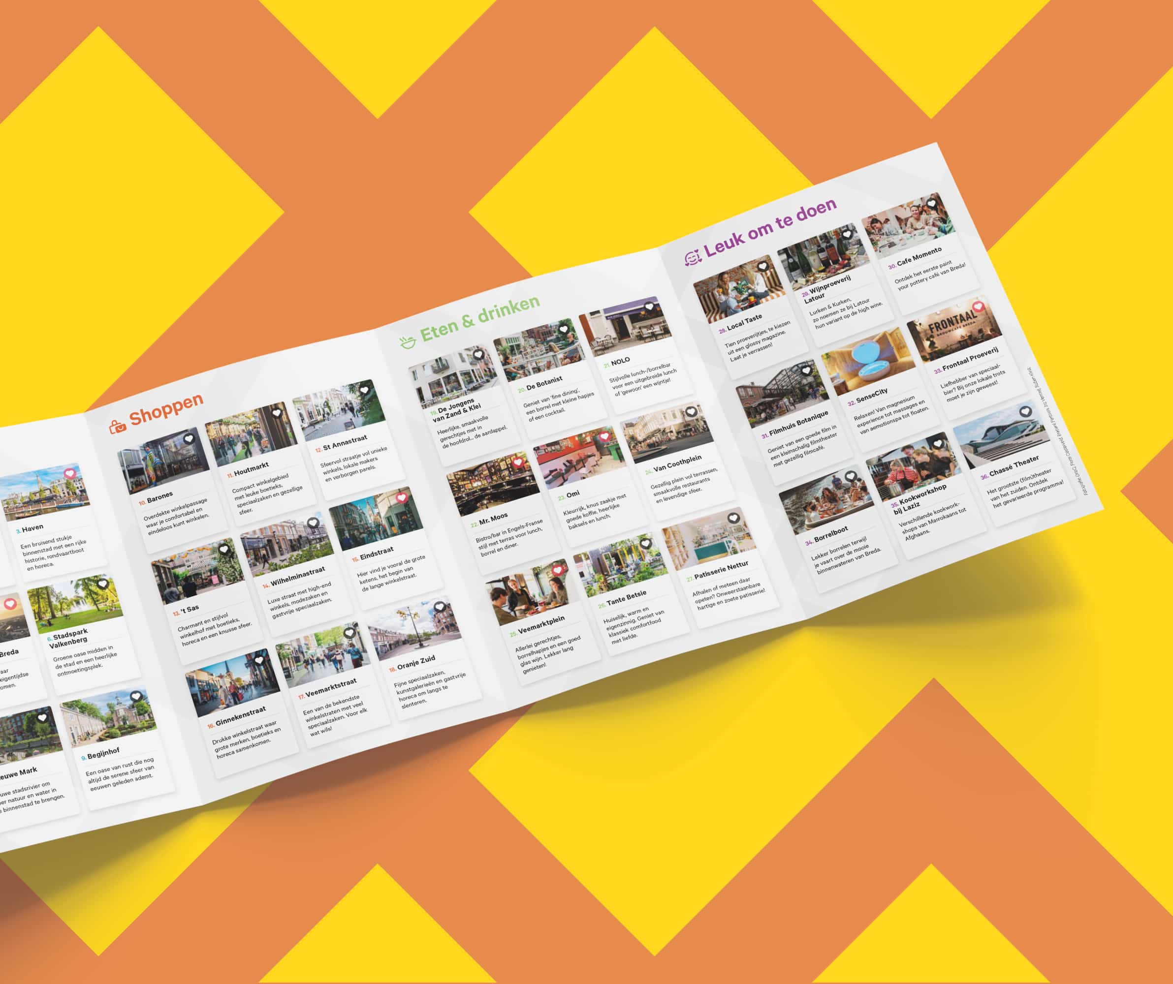 Thematische boekjes per local, gevuld met persoonlijke favorieten: van eten en drinken tot leuk om te doen. De boekjes zijn (gratis) verkrijgbaar in de Explore Breda Store en omliggende hotspots.