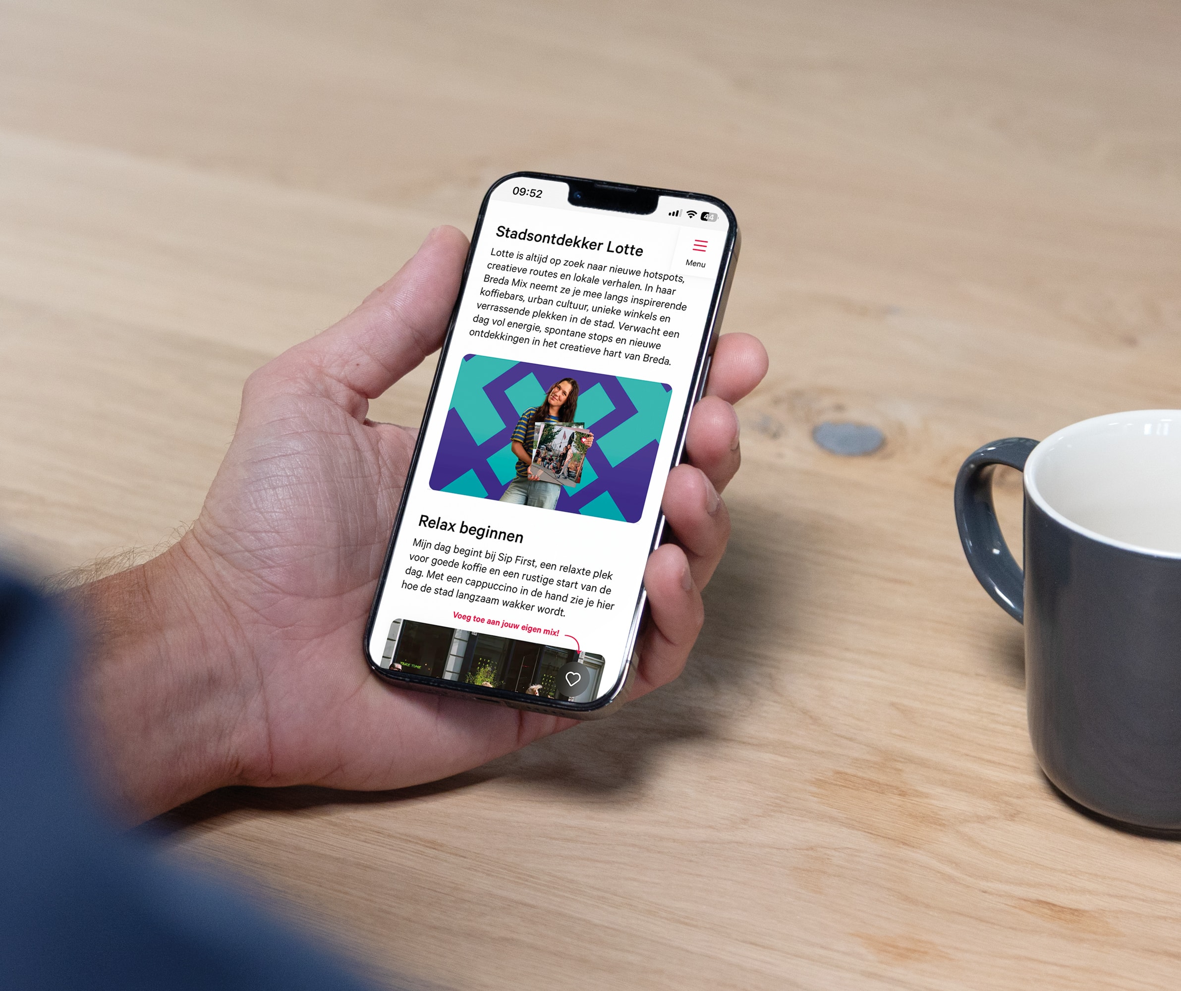 Vanuit dit strategisch vertrekpunt ontwikkelden we het creatieve concept: de Breda Mix. Vier Bredase locals delen hun persoonlijke mix van favoriete plekken. Van koffie tot cultuur, van verborgen parels tot highlights. Niet alleen ter inspiratie, maar ook ter activatie: mensen kunnen ook hun eigen favorieten verzamelen en zo hun ideale dag samenstellen, oftewel: Maak jouw eigen Breda Mix.